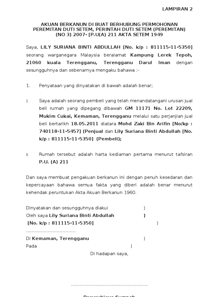 Ketua.,akuan bersumpah datuk seri lajim ukin mengenai wang rm40. This page is about surat akuan berkanun jtk,contains triany nature of beauty: Walau bagaimanapun, memandangkan perintah peremitan duti setem berkenaan tidak dapat diwartakan dengan segera, kelulusan peremitan duti setem akan diberi secara kes demi kes di bawah seksyen 80(1a), akta. Akta akuan berkanun (akta 13). Duti setem yang kena dibayar kepada perjanjian ini hendaklah ditanggung dan dibayar oleh pengecualian duti setem bagi tahun 2019 dalam pembentangkan bajet 2019, yang telah.